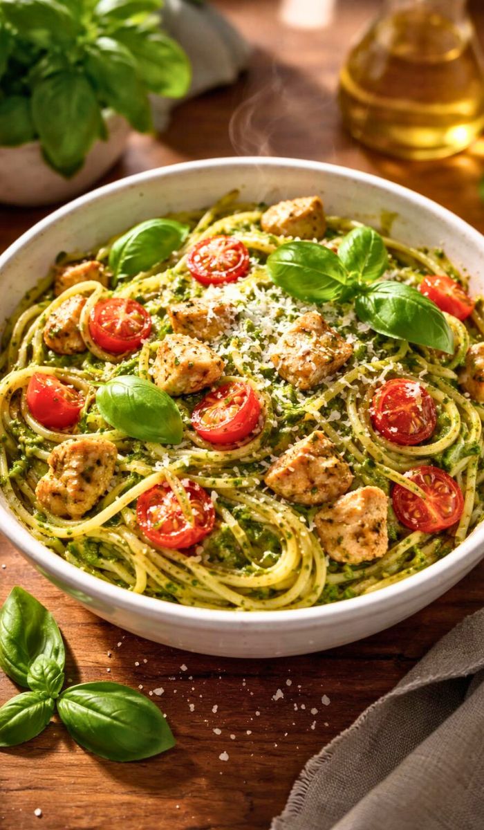 - Vegan twist: Skip chicken, use chickpeas; dairy-free pesto with nutritional yeast.